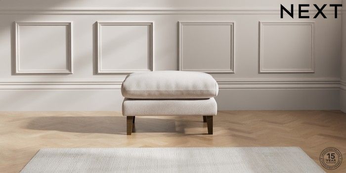 6.12.1 Buy Palermo Relaxed Sit Footstool Cotswold Chenille Oyster Tapered - Mid from the Laura Ashley online shop Click here to use our website with more accessibility support, for example screen readers