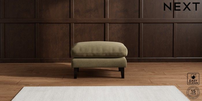 6.12.1 Buy Palermo Relaxed Sit Footstool Fine Chenille Easy Clean Dark Moss Green Tapered - Dark from the Laura Ashley online shop Click here to use our website with more accessibility support, for example screen readers