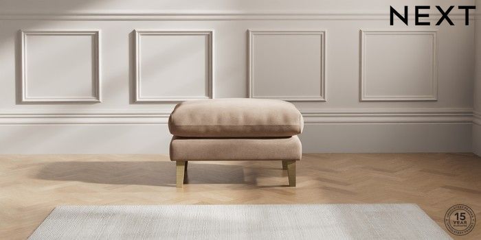 6.12.1 Buy Palermo Relaxed Sit Footstool Luxe Chenille Mid Natural Tapered - Light from the Laura Ashley online shop Click here to use our website with more accessibility support, for example screen readers