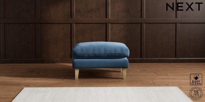 6.12.1 Buy Palermo Relaxed Sit Footstool Plush Velvet Easy Clean Airforce Blue Tapered - Light from the Laura Ashley online shop Click here to use our website with more accessibility support, for example screen readers