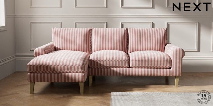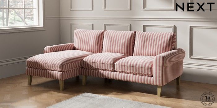 7.3.1 Buy Palermo Relaxed Sit Medium Sofa Chaise - Left Hand Bold Chenille Stripe Dark Pink Tapered - Light from the Laura Ashley online shop Click here to use our website with more accessibility support, for example screen readers