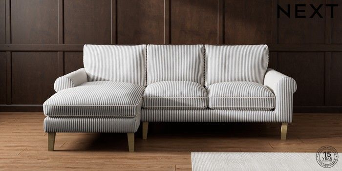 7.3.1 Buy Palermo Relaxed Sit Medium Sofa Chaise - Left Hand Chenille Stripe Slate Blue Tapered - Light from the Laura Ashley online shop Click here to use our website with more accessibility support, for example screen readers