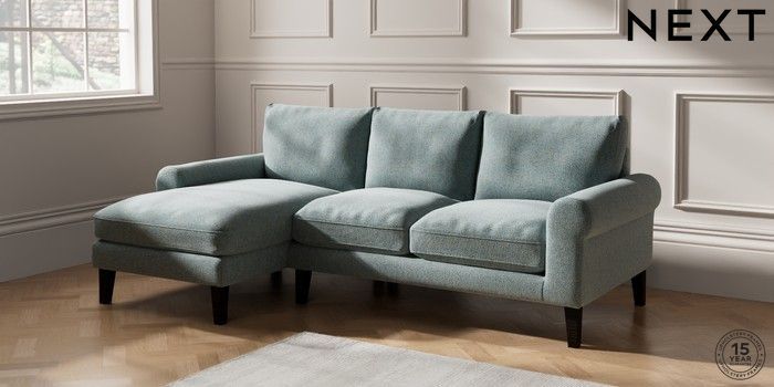 6.12.1 Buy Palermo Relaxed Sit Medium Sofa Chaise - Left Hand Chunky Marl Mid Blue Tapered - Dark from the Laura Ashley online shop Click here to use our website with more accessibility support, for example screen readers