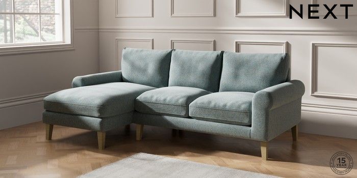 6.12.1 Buy Palermo Relaxed Sit Medium Sofa Chaise - Left Hand Chunky Marl Mid Blue Tapered - Light from the Laura Ashley online shop Click here to use our website with more accessibility support, for example screen readers