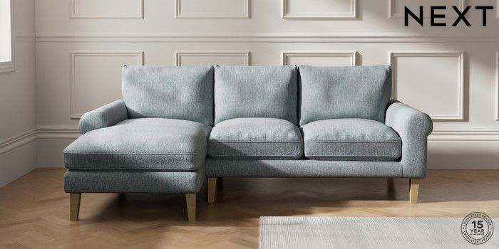 7.0.3 Buy Palermo Relaxed Sit Medium Sofa Chaise - Left Hand Chunky Weave Mid Blue Tapered - Light from the Laura Ashley online shop Click here to use our website with more accessibility support, for example screen readers