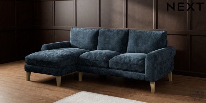 6.12.1 Buy Palermo Relaxed Sit Medium Sofa Chaise - Left Hand Distressed Velour Midnight Blue Tapered - Light from the Laura Ashley online shop Click here to use our website with more accessibility support, for example screen readers