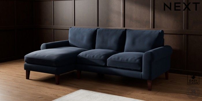6.12.1 Buy Palermo Relaxed Sit Medium Sofa Chaise - Left Hand Fine Chenille Easy Clean Dark Navy Blue Tapered - Dark Brown from the Laura Ashley online shop Click here to use our website with more accessibility support, for example screen readers