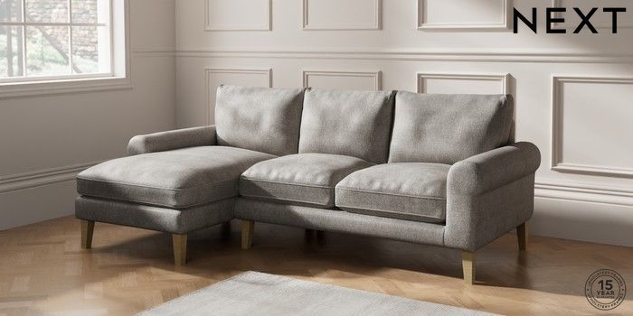 6.12.1 Buy Palermo Relaxed Sit Medium Sofa Chaise - Left Hand Plush Chenille Light Grey Tapered - Light from the Laura Ashley online shop Click here to use our website with more accessibility support, for example screen readers