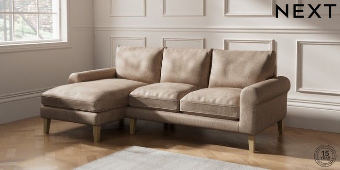 6.12.1 Buy Palermo Relaxed Sit Medium Sofa Chaise - Left Hand Plush Chenille Mid Natural Tapered - Light from the Laura Ashley online shop Click here to use our website with more accessibility support, for example screen readers