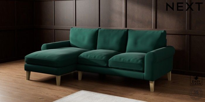 6.12.1 Buy Palermo Relaxed Sit Medium Sofa Chaise - Left Hand Plush Velvet Easy Clean Bottle Green Tapered - Light from the Laura Ashley online shop Click here to use our website with more accessibility support, for example screen readers