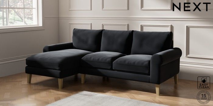 6.12.1 Buy Palermo Relaxed Sit Medium Sofa Chaise - Left Hand Plush Velvet Easy Clean Charcoal Grey Tapered - Light from the Laura Ashley online shop Click here to use our website with more accessibility support, for example screen readers