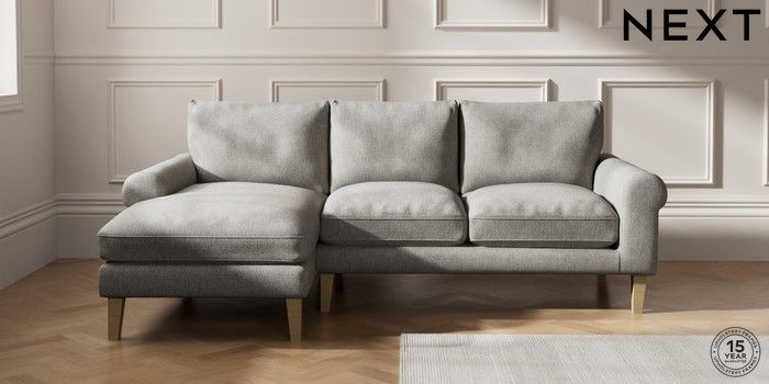 7.0.3 Buy Palermo Relaxed Sit Medium Sofa Chaise - Left Hand Tweedy Chenille Mid Grey Tapered - Light from the Laura Ashley online shop Click here to use our website with more accessibility support, for example screen readers