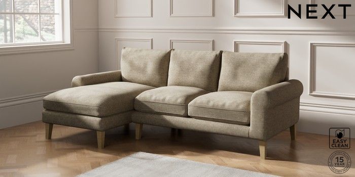 6.12.1 Buy Palermo Relaxed Sit Medium Sofa Chaise - Left Hand Woven Chenille Easy Clean Mid Natural Tapered - Light from the Laura Ashley online shop Click here to use our website with more accessibility support, for example screen readers