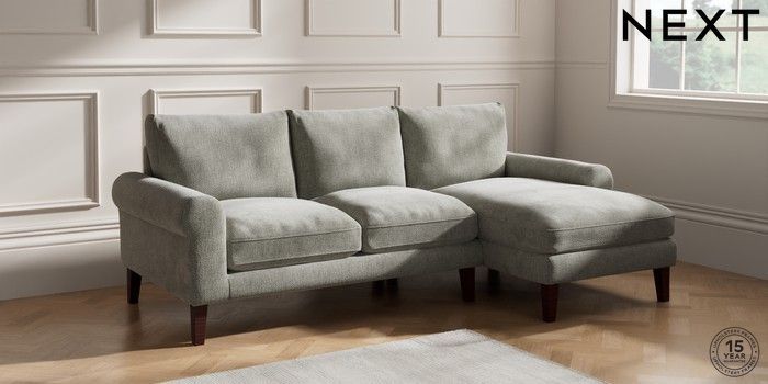 6.12.1 Buy Palermo Relaxed Sit Medium Sofa Chaise - Right Hand Chunky Chenille Light Grey Tapered - Dark Brown from the Laura Ashley online shop Click here to use our website with more accessibility support, for example screen readers