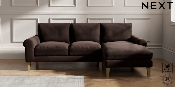 7.0.3 Buy Palermo Relaxed Sit Medium Sofa Chaise - Right Hand Fine Chenille Easy Clean Chocolate Brown Tapered - Light from the Laura Ashley online shop Click here to use our website with more accessibility support, for example screen readers