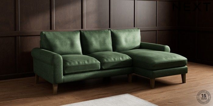 6.12.1 Buy Palermo Relaxed Sit Medium Sofa Chaise - Right Hand Luxe Chenille Dark Green Tapered - Mid from the Laura Ashley online shop Click here to use our website with more accessibility support, for example screen readers