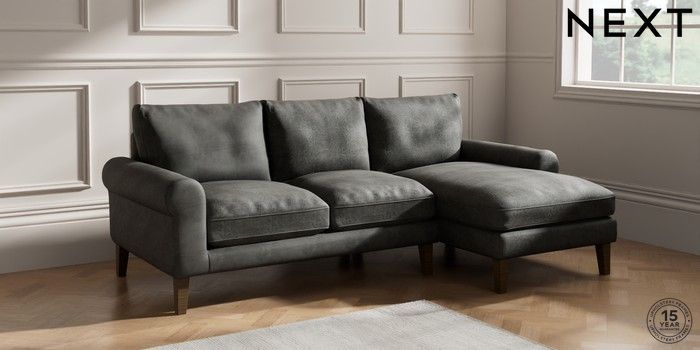6.12.1 Buy Palermo Relaxed Sit Medium Sofa Chaise - Right Hand Monza Faux Leather Easy Clean Dark Grey Tapered - Mid from the Laura Ashley online shop Click here to use our website with more accessibility support, for example screen readers