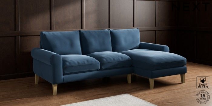 6.12.1 Buy Palermo Relaxed Sit Medium Sofa Chaise - Right Hand Plush Velvet Easy Clean Airforce Blue Tapered - Light from the Laura Ashley online shop Click here to use our website with more accessibility support, for example screen readers