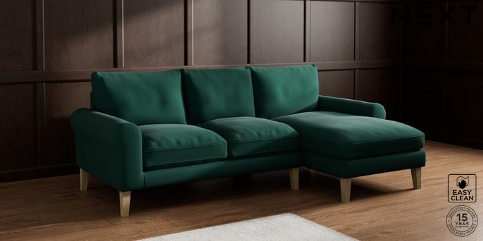 6.12.1 Buy Palermo Relaxed Sit Medium Sofa Chaise - Right Hand Plush Velvet Easy Clean Bottle Green Tapered - Light from the Laura Ashley online shop Click here to use our website with more accessibility support, for example screen readers