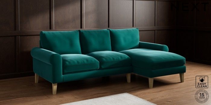 6.12.1 Buy Palermo Relaxed Sit Medium Sofa Chaise - Right Hand Plush Velvet Easy Clean Juniper Green Tapered - Light from the Laura Ashley online shop Click here to use our website with more accessibility support, for example screen readers