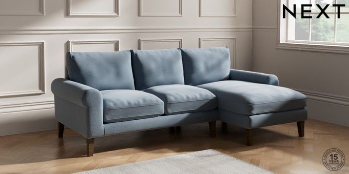 6.12.1 Buy Palermo Relaxed Sit Medium Sofa Chaise - Right Hand Relaxed Linen Look Mid Blue Tapered - Mid from the Laura Ashley online shop Click here to use our website with more accessibility support, for example screen readers