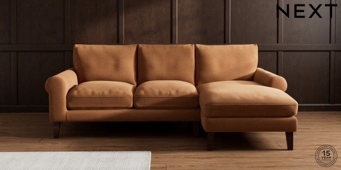 7.0.3 Buy Palermo Relaxed Sit Medium Sofa Chaise - Right Hand Ripple Chenille Mid Rust Brown Tapered - Dark Brown from the Laura Ashley online shop Click here to use our website with more accessibility support, for example screen readers
