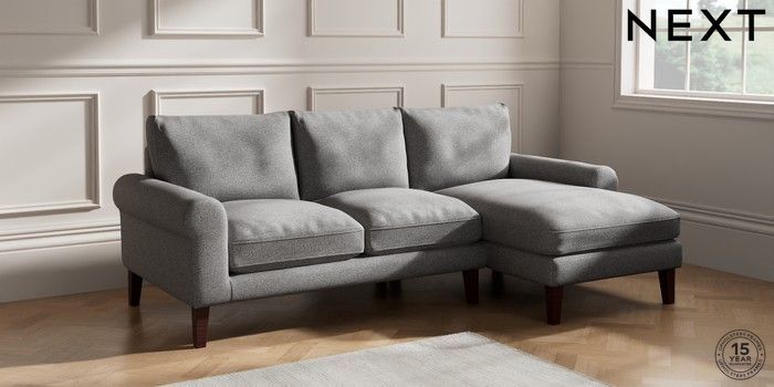 6.12.1 Buy Palermo Relaxed Sit Medium Sofa Chaise - Right Hand Studio Chenille Mid Grey Tapered - Dark Brown from the Laura Ashley online shop Click here to use our website with more accessibility support, for example screen readers