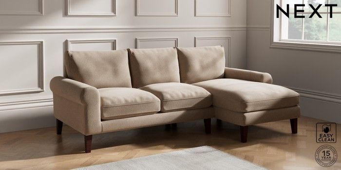 6.12.1 Buy Palermo Relaxed Sit Medium Sofa Chaise - Right Hand Tweedy Blend Easy Clean Light Dove Natural Tapered - Dark Brown from the Laura Ashley online shop Click here to use our website with more accessibility support, for example screen readers