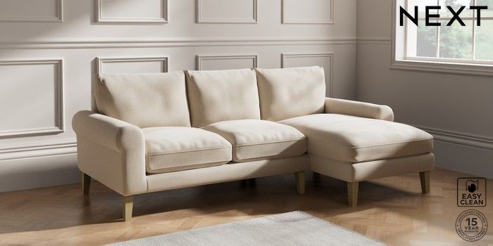 6.12.1 Buy Palermo Relaxed Sit Medium Sofa Chaise - Right Hand Tweedy Blend Easy Clean Oyster Tapered - Light from the Laura Ashley online shop Click here to use our website with more accessibility support, for example screen readers