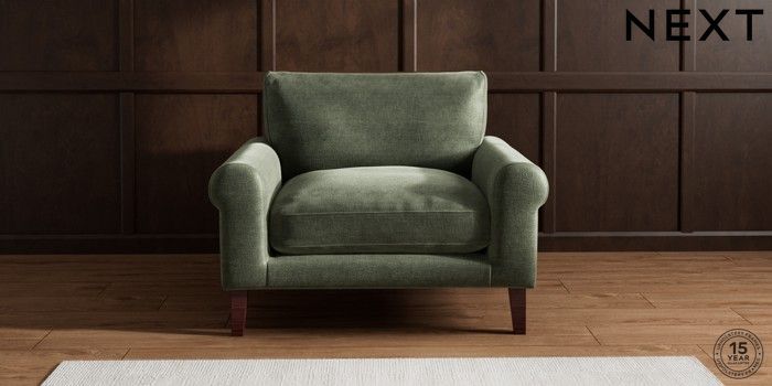 6.12.1 Buy Palermo Relaxed Sit Snuggle Luxe Chenille Mid Green Tapered - Dark Brown from the Laura Ashley online shop Click here to use our website with more accessibility support, for example screen readers