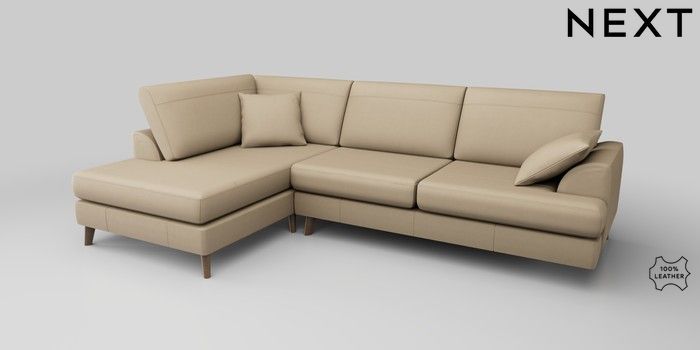 6.12.1 Buy Parker Leather Large Corner Chaise - Left Hand Turin Leather Light Natural Low Retro Tapered - Mid from the Laura Ashley online shop Click here to use our website with more accessibility support, for example screen readers