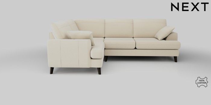 6.12.1 Buy Parker Leather Medium Corner Sofa - Left Hand Turin Leather Cream Low Retro Tapered - Dark from the Laura Ashley online shop Click here to use our website with more accessibility support, for example screen readers