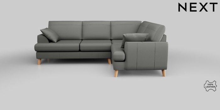 6.12.1 Buy Parker Leather Medium Corner Sofa - Right Hand Columbia French Grey Low Retro Tapered - Light from the Laura Ashley online shop Click here to use our website with more accessibility support, for example screen readers