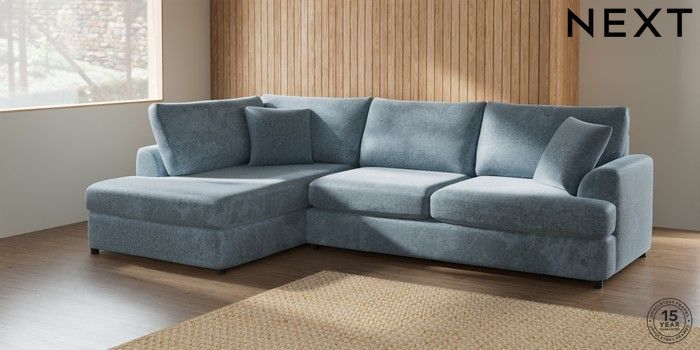7.2.6 Buy Parker Platform Large Corner Chaise - Left Hand Plush Chenille Light Blue Glide from the Laura Ashley online shop Click here to use our website with more accessibility support, for example screen readers
