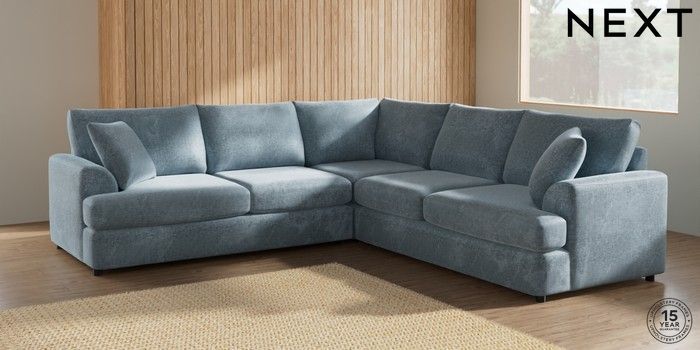 7.2.6 Buy Parker Platform Medium Corner Sofa - Universal Plush Chenille Light Blue Glide from the Laura Ashley online shop Click here to use our website with more accessibility support, for example screen readers