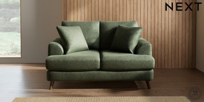 7.0.3 Buy Parker 2 Seater Small Sofa Boucle Chenille Dark Moss Green Low Retro Tapered - Mid from the Laura Ashley online shop Click here to use our website with more accessibility support, for example screen readers