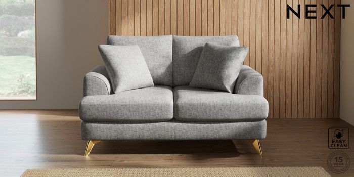 7.2.5 Buy Parker 2 Seater Small Sofa Chunky Boucle Easy Clean Light Grey High Metal - Brass from the Laura Ashley online shop Click here to use our website with more accessibility support, for example screen readers