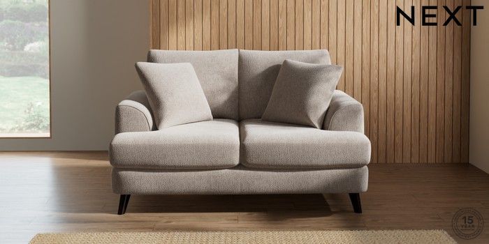 7.2.6 Buy Parker 2 Seater Small Sofa Chunky Chenille Light Dove Low Retro Tapered - Dark from the Laura Ashley online shop Click here to use our website with more accessibility support, for example screen readers