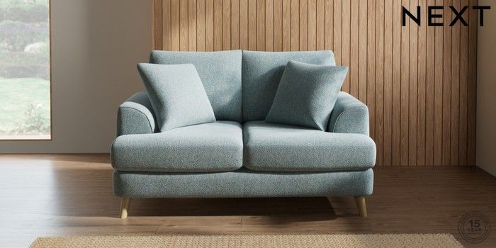 7.0.3 Buy Parker 2 Seater Small Sofa Chunky Marl Mid Blue Low Retro Tapered - Light from the Laura Ashley online shop Click here to use our website with more accessibility support, for example screen readers