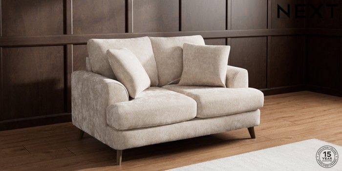 7.0.3 Buy Parker 2 Seater Small Sofa Distressed Velour Mid Natural Low Retro Tapered - Mid from the Laura Ashley online shop Click here to use our website with more accessibility support, for example screen readers