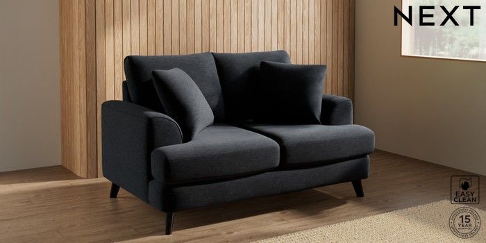 7.2.10 Buy Parker 2 Seater Small Sofa Fine Chenille Easy Clean Black Low Retro Tapered - Dark from the Laura Ashley online shop Click here to use our website with more accessibility support, for example screen readers