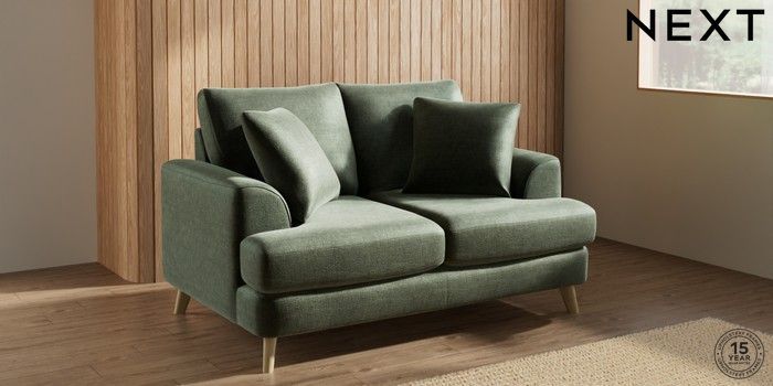 7.0.3 Buy Parker 2 Seater Small Sofa Luxe Chenille Mid Green Low Retro Tapered - Light from the Laura Ashley online shop Click here to use our website with more accessibility support, for example screen readers
