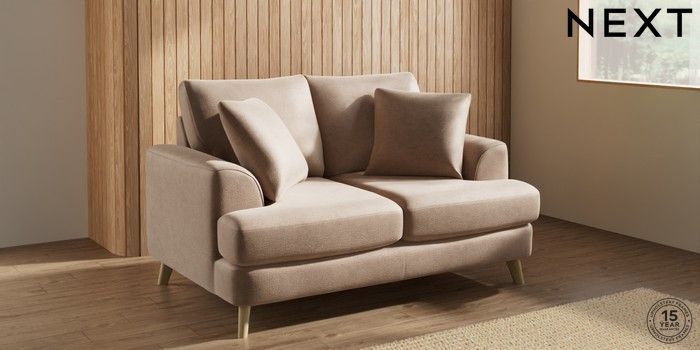 7.0.3 Buy Parker 2 Seater Small Sofa Luxe Chenille Mid Natural Low Retro Tapered - Light from the Laura Ashley online shop Click here to use our website with more accessibility support, for example screen readers