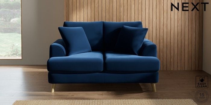 7.0.3 Buy Parker 2 Seater Small Sofa Plush Velvet Easy Clean Navy Blue Low Retro Tapered - Light from the Laura Ashley online shop Click here to use our website with more accessibility support, for example screen readers