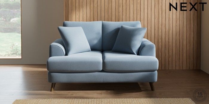 7.2.5 Buy Parker 2 Seater Small Sofa Relaxed Linen Look Mid Blue Low Retro Tapered - Mid from the Laura Ashley online shop Click here to use our website with more accessibility support, for example screen readers