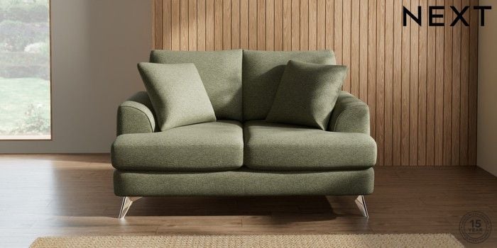 7.2.5 Buy Parker 2 Seater Small Sofa Tweedy Chenille Mid Moss Green High Metal - Chrome from the Laura Ashley online shop Click here to use our website with more accessibility support, for example screen readers