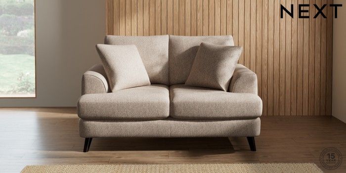 7.2.5 Buy Parker 2 Seater Small Sofa Tweedy Chenille Mid Natural Low Retro Tapered - Dark from the Laura Ashley online shop Click here to use our website with more accessibility support, for example screen readers