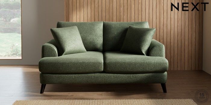 7.0.3 Buy Parker 3 Seater Small Sofa Boucle Chenille Dark Moss Green Low Retro Tapered - Dark from the Laura Ashley online shop Click here to use our website with more accessibility support, for example screen readers