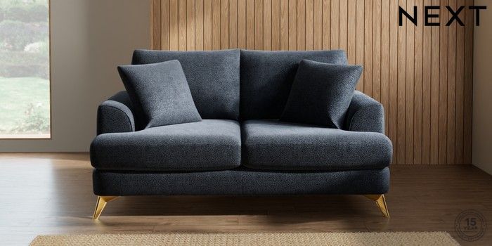 7.2.5 Buy Parker 3 Seater Small Sofa Boucle Chenille Dark Slate Blue High Metal - Brass from the Laura Ashley online shop Click here to use our website with more accessibility support, for example screen readers