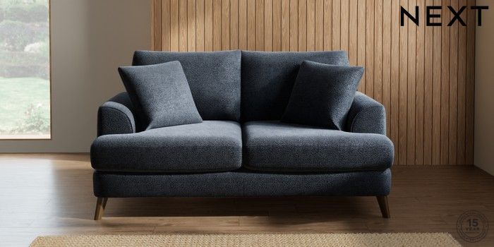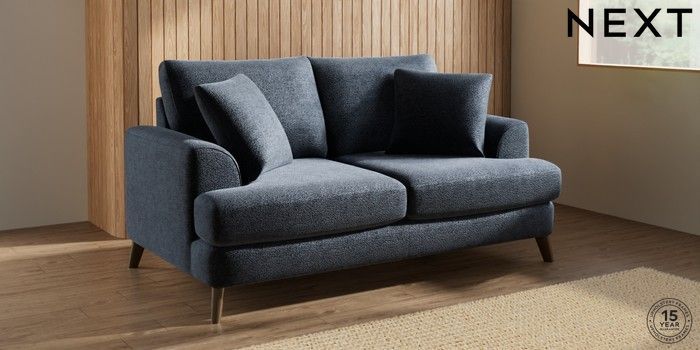 7.0.3 Buy Parker 3 Seater Small Sofa Boucle Chenille Dark Slate Blue Low Retro Tapered - Mid from the Laura Ashley online shop Click here to use our website with more accessibility support, for example screen readers